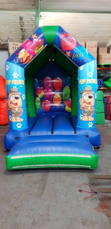Now available to hire here at bounce a lot northwest with this 8ft x12ft pup patrol castle in nice bright colours its perfect for any girls or boys birthday or for and family party or any special events.